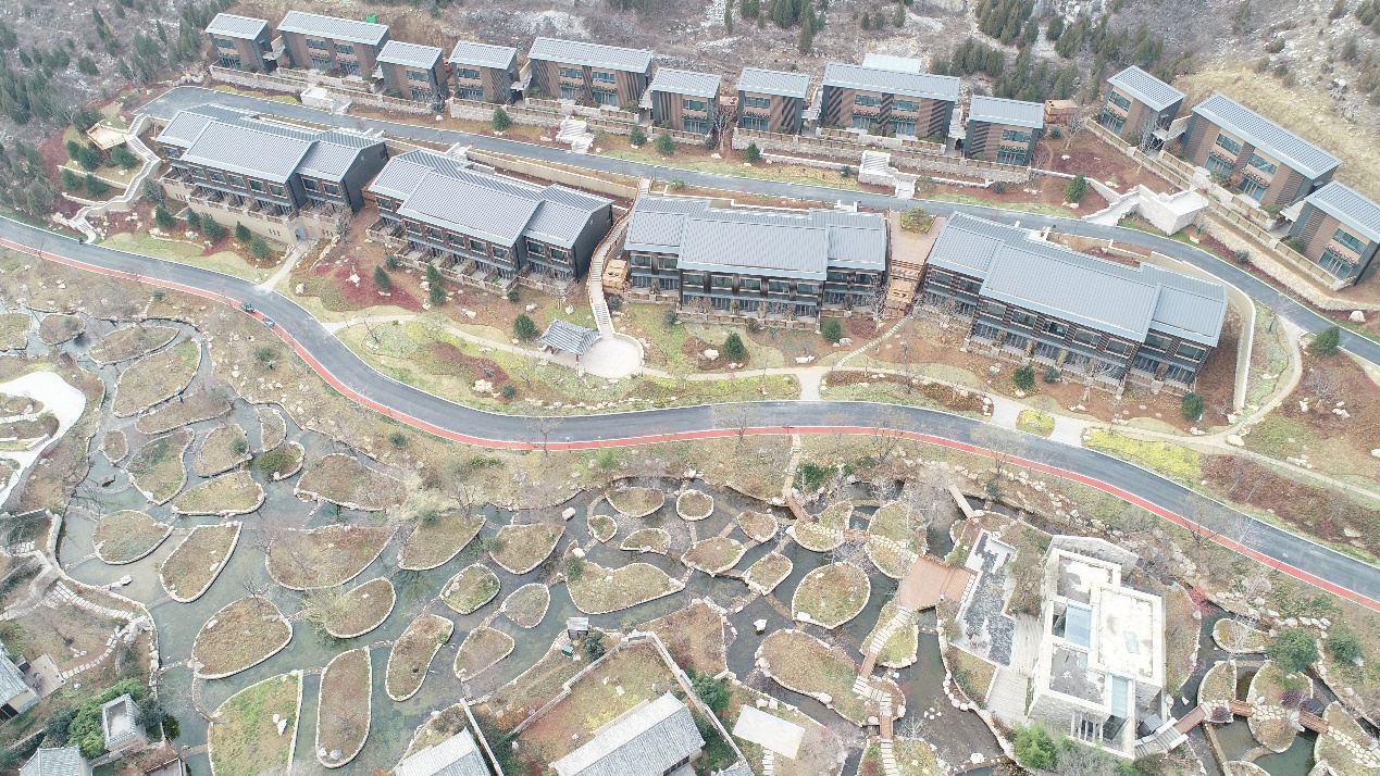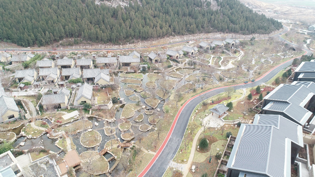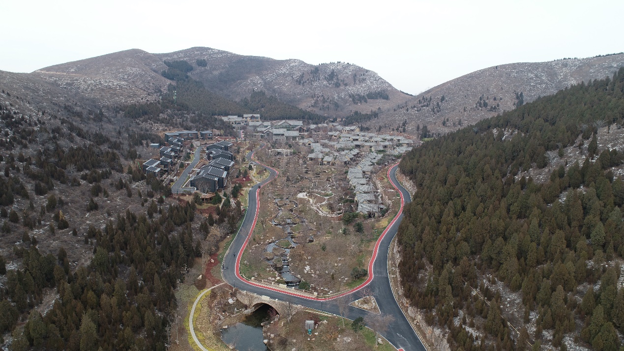 從高空鳥瞰山東曲阜市尼山鎮健身步道