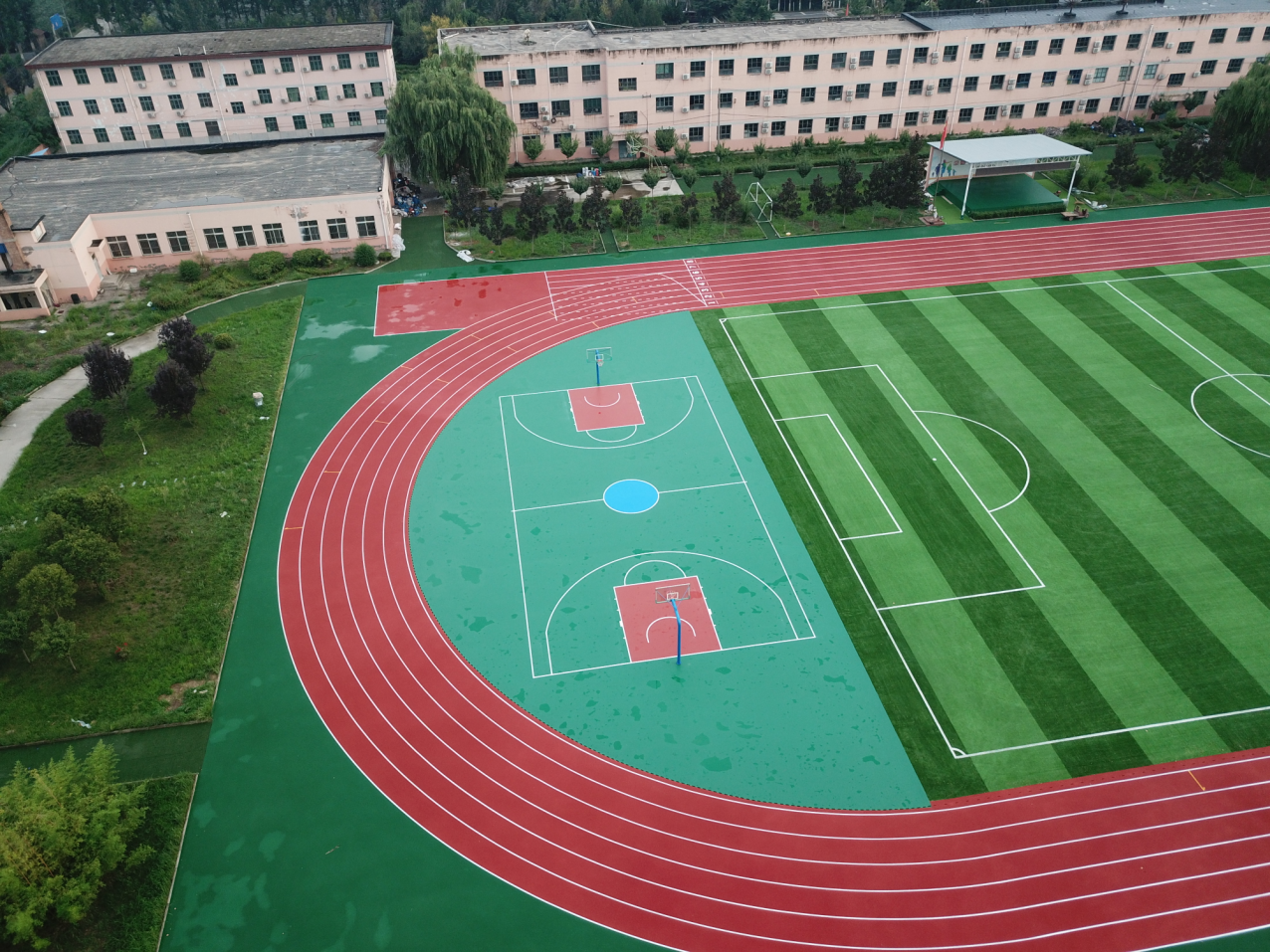 2019年8月底,西安市鄠邑區秦風初級中學一個嶄新的復合型自結紋操場落成了。該項目包含了復合型自結紋跑道及塑膠(硅pu)球場,總面積6000平方,均采用“廣州帝森DISEN”品牌聚氨酯雙組份材料,并由廣州帝森康體設備有限公司完成鋪裝。