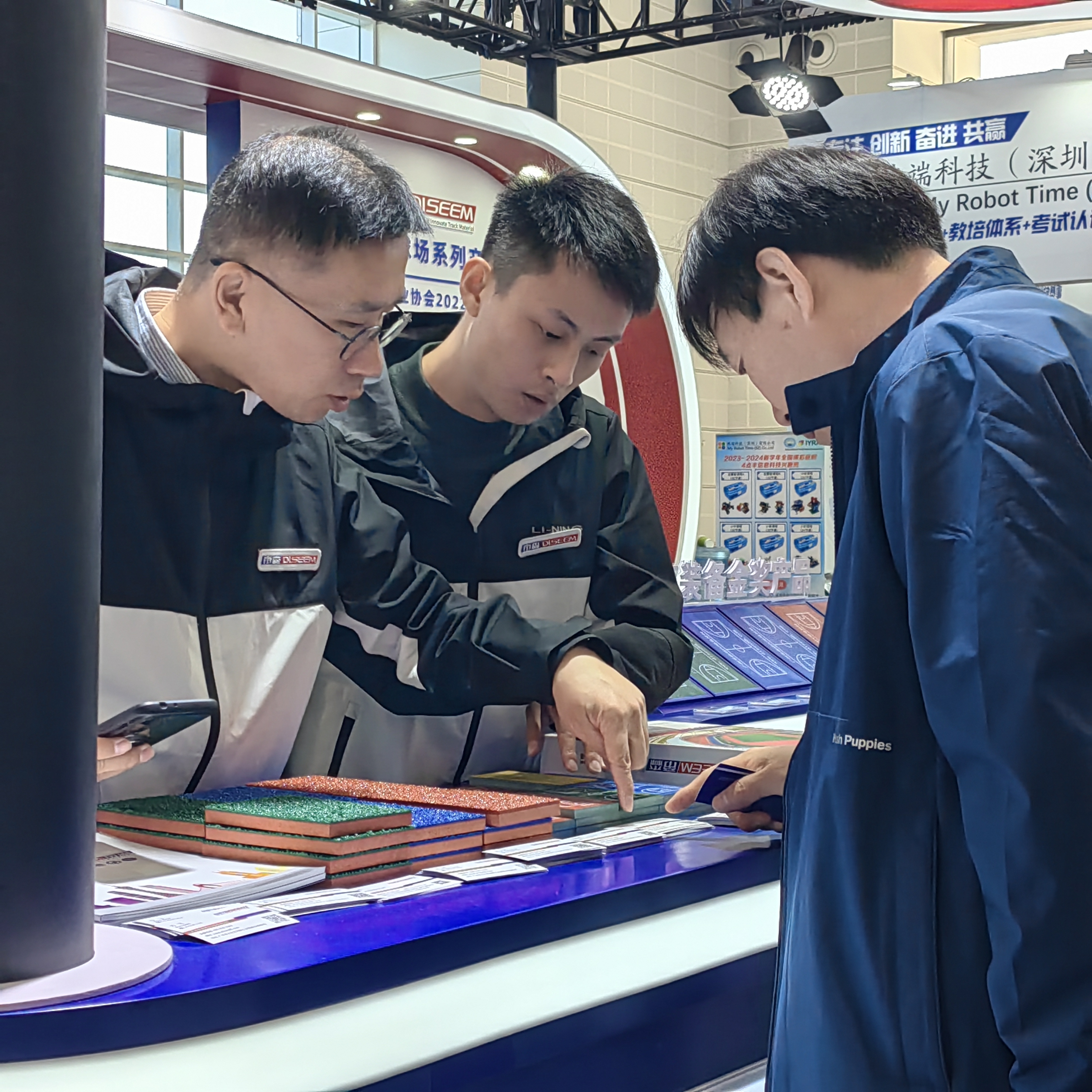 廣州帝森展位位于S12號展館075展位 ,作為“無溶劑跑道”概念的倡導者和實踐者,又作為20多年專業彈性運動地面供應商,許多客戶聞訊而來咨詢了解。