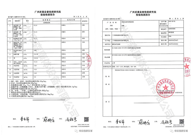 廣州帝森DISEN單組(zu)份硅PU球場(chang)材(cai)料已經通過了(le)廣州質(zhi)(zhi)量監督檢(jian)測研究院檢(jian)驗檢(jian)測。權威報告顯(xian)示,各項指標(biao)全部合格,所檢(jian)項目(mu)符(fu)合新國標(biao)要求,未檢(jian)出任(ren)何有害物質(zhi)(zhi),甚至(zhi)還優于國家標(biao)準,屬于無(wu)刺(ci)激(ji)氣味的(de)綠色環保(bao)產品。