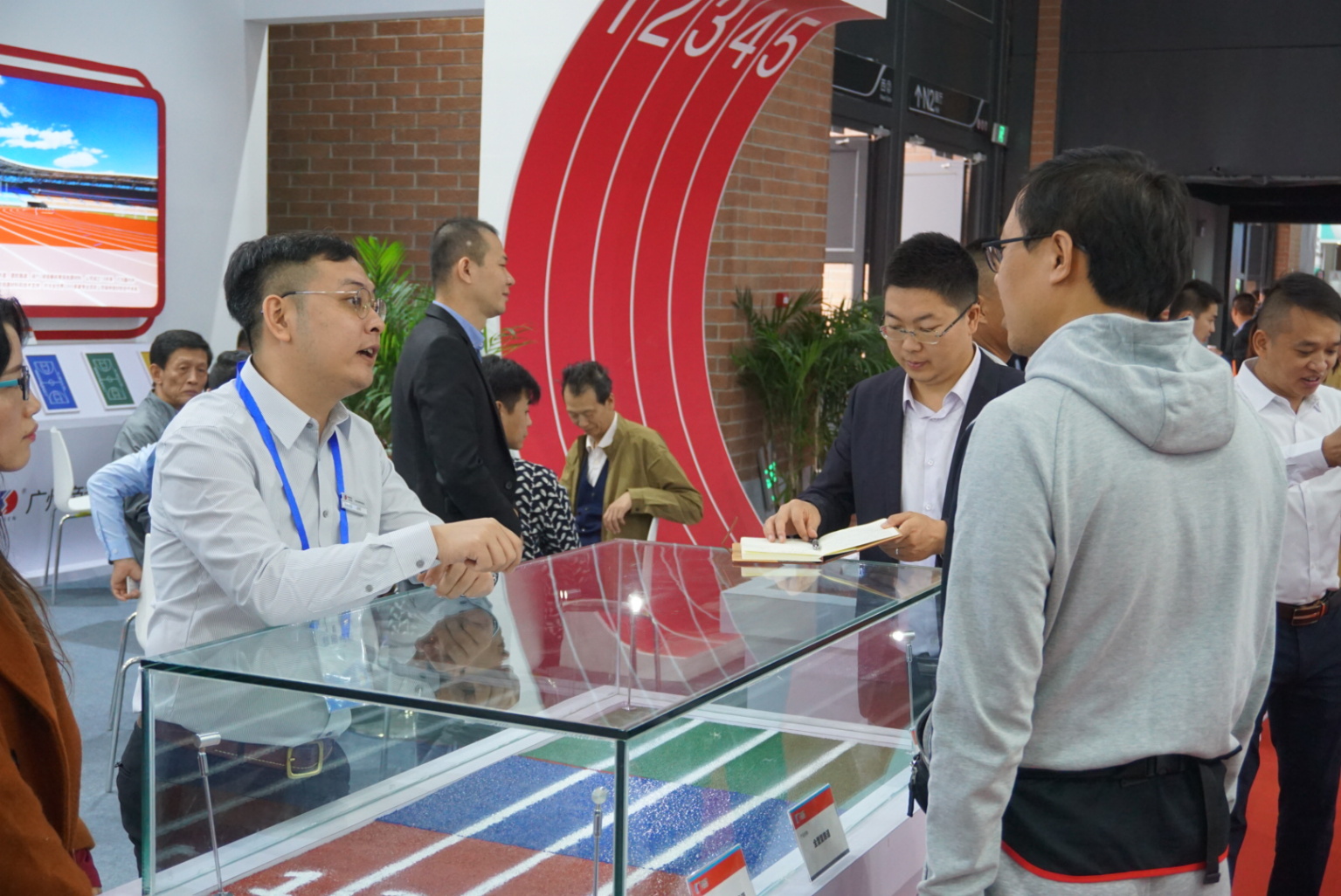 廣州帝森DISEN在第77屆中國教育裝備展示會發布多項運動地材新產品、新技術,客戶親身接觸體驗樣品性能后,贊嘆帝森領先的技術研發實力,對企業和產品也有了更大信心。