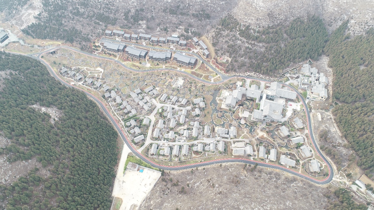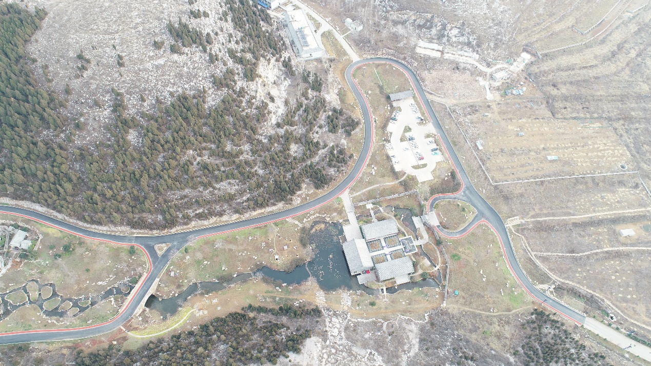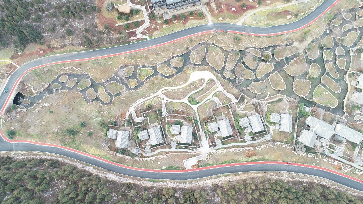 從高空鳥瞰山東曲阜市尼山鎮健身步道