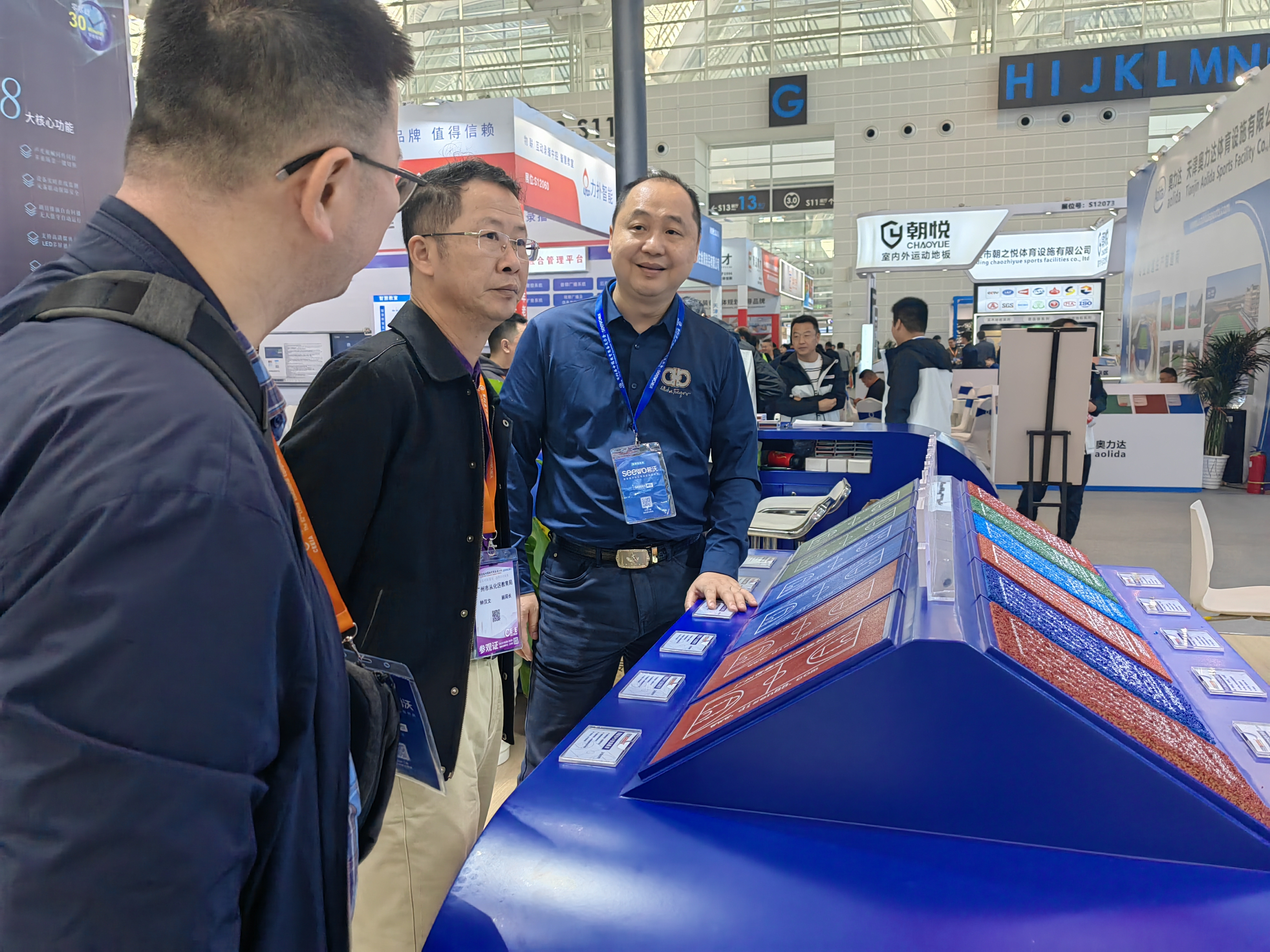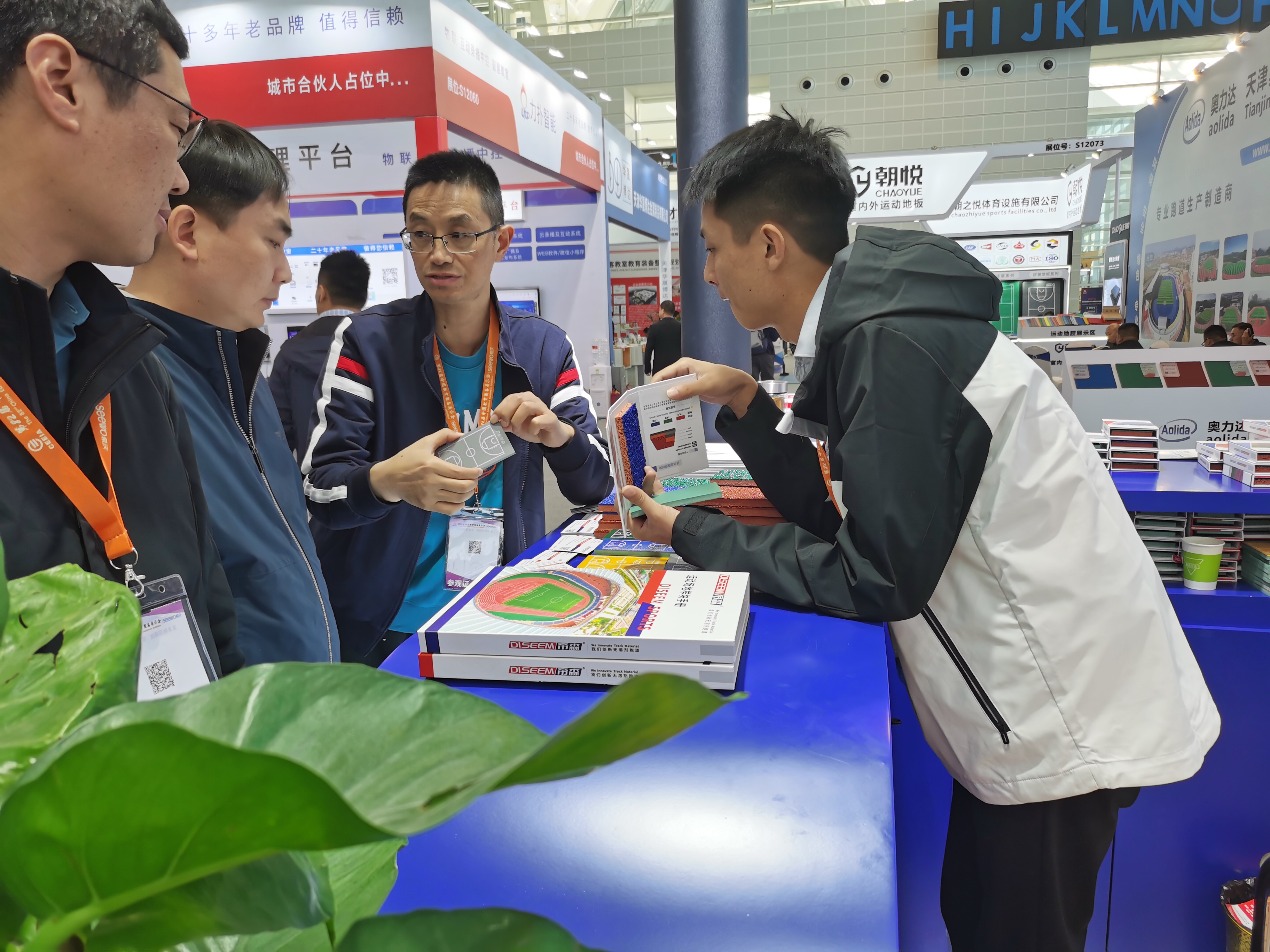 廣州帝森展位位于S12號展館075展位 ,作為“無溶劑跑道”概念的倡導者和實踐者,又作為20多年專業彈性運動地面供應商,許多客戶聞訊而來咨詢了解。