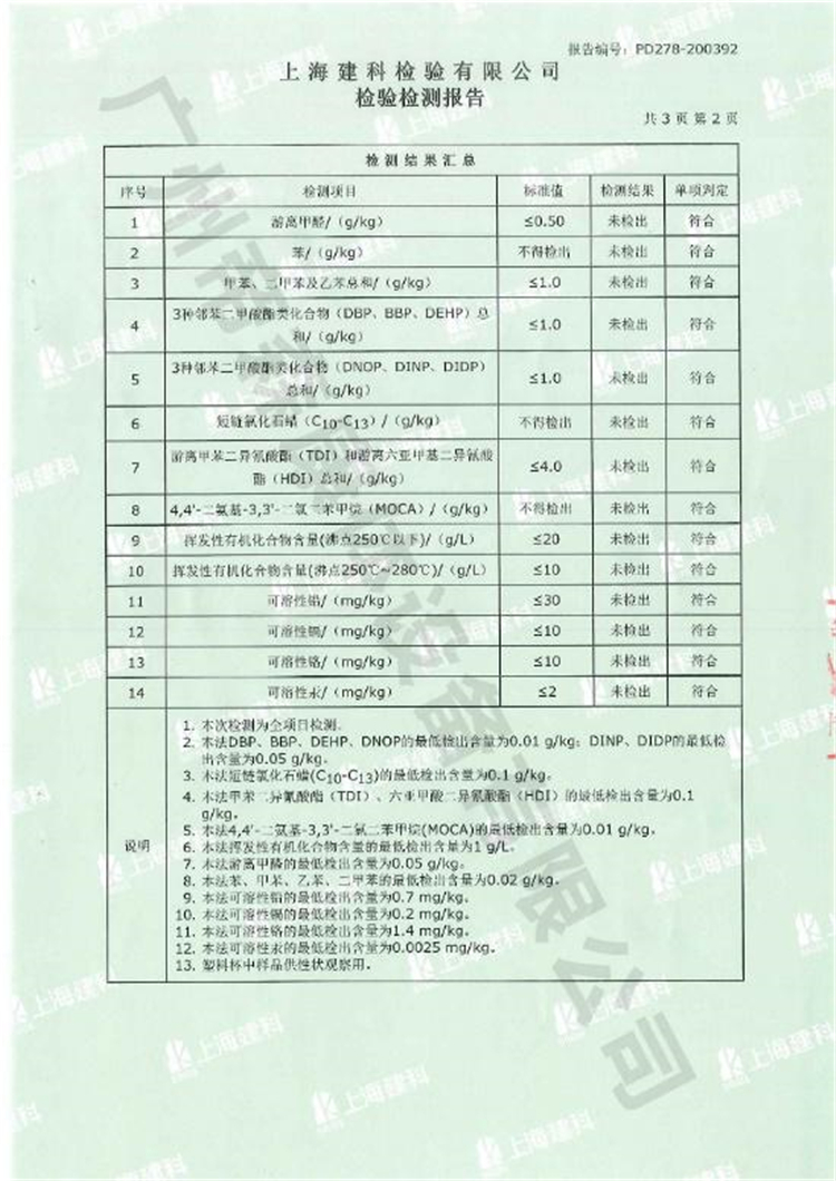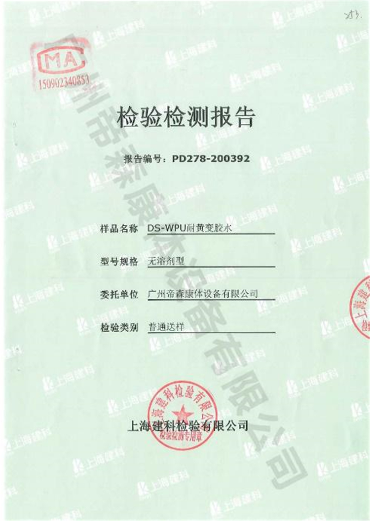 日前,為讓廣大業主放心使用綠色環保的地面材料,廣州帝森DISEN耐黃變膠水接受了上海建科檢驗有限公司檢測。報告顯示,廣州帝森DISEN耐黃變膠水符合更嚴要求的上海團標,而且所有有害物質檢測項目都是“未檢出”。