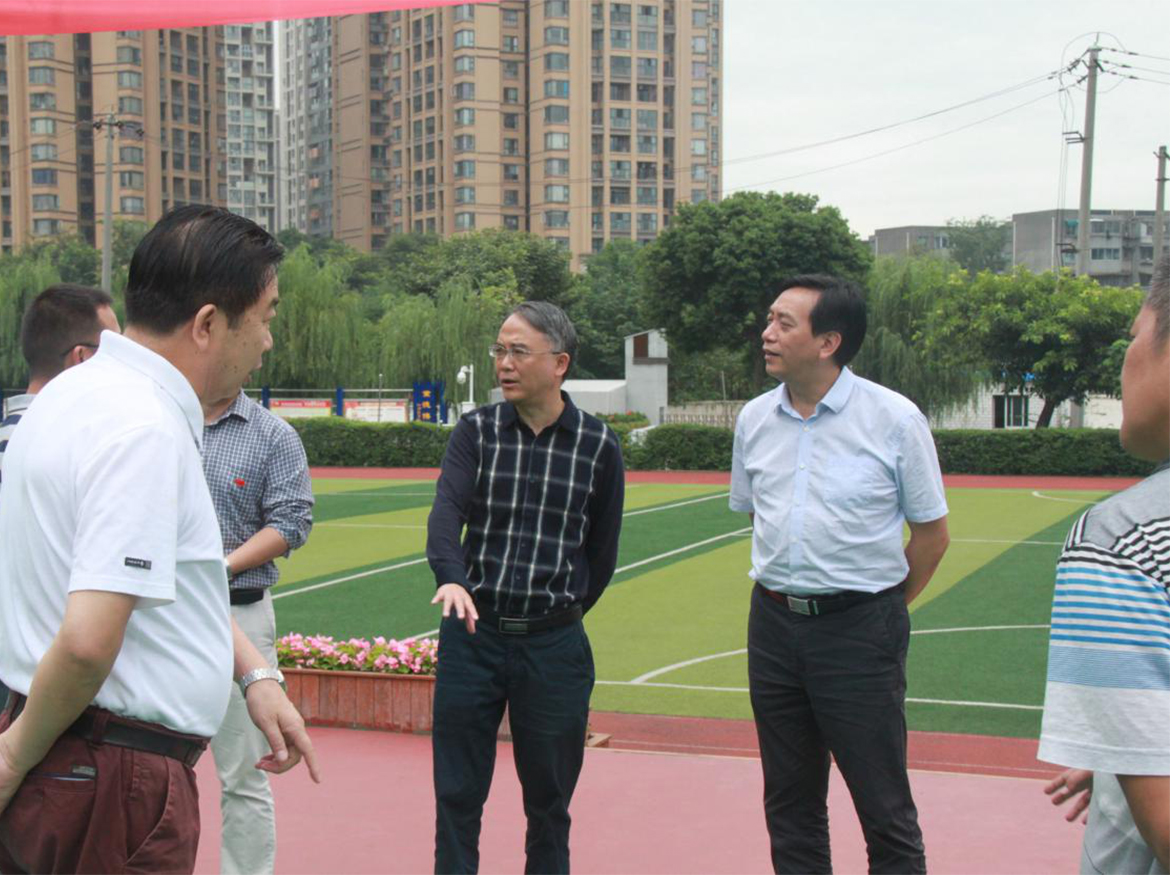 由中國教育裝備行業協會學校體育裝備分會組織,廣州帝森康體設備有限公司向中國教育發展基金會捐建四川省成都市華建學校籃球場地,校方為捐建企業廣州帝森贈送錦旗致謝。