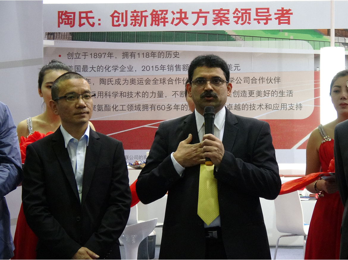 DISEEN帝森聯手陶氏化學在中國國際體育用品博覽會上正式推出高性能環保無溶劑跑道膠粘劑解決方案,助力在中國打造安全健康的運動跑道和休閑場地。