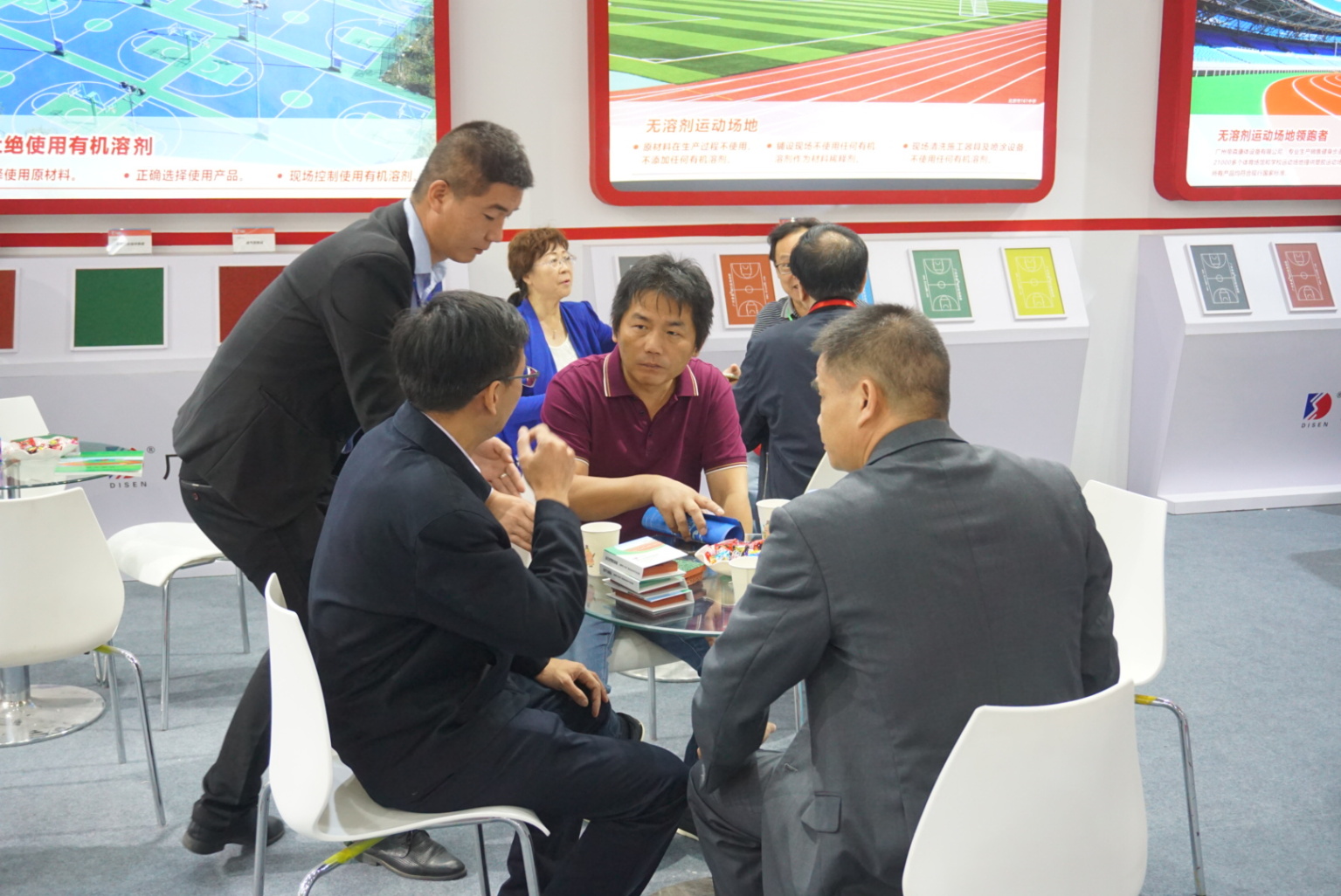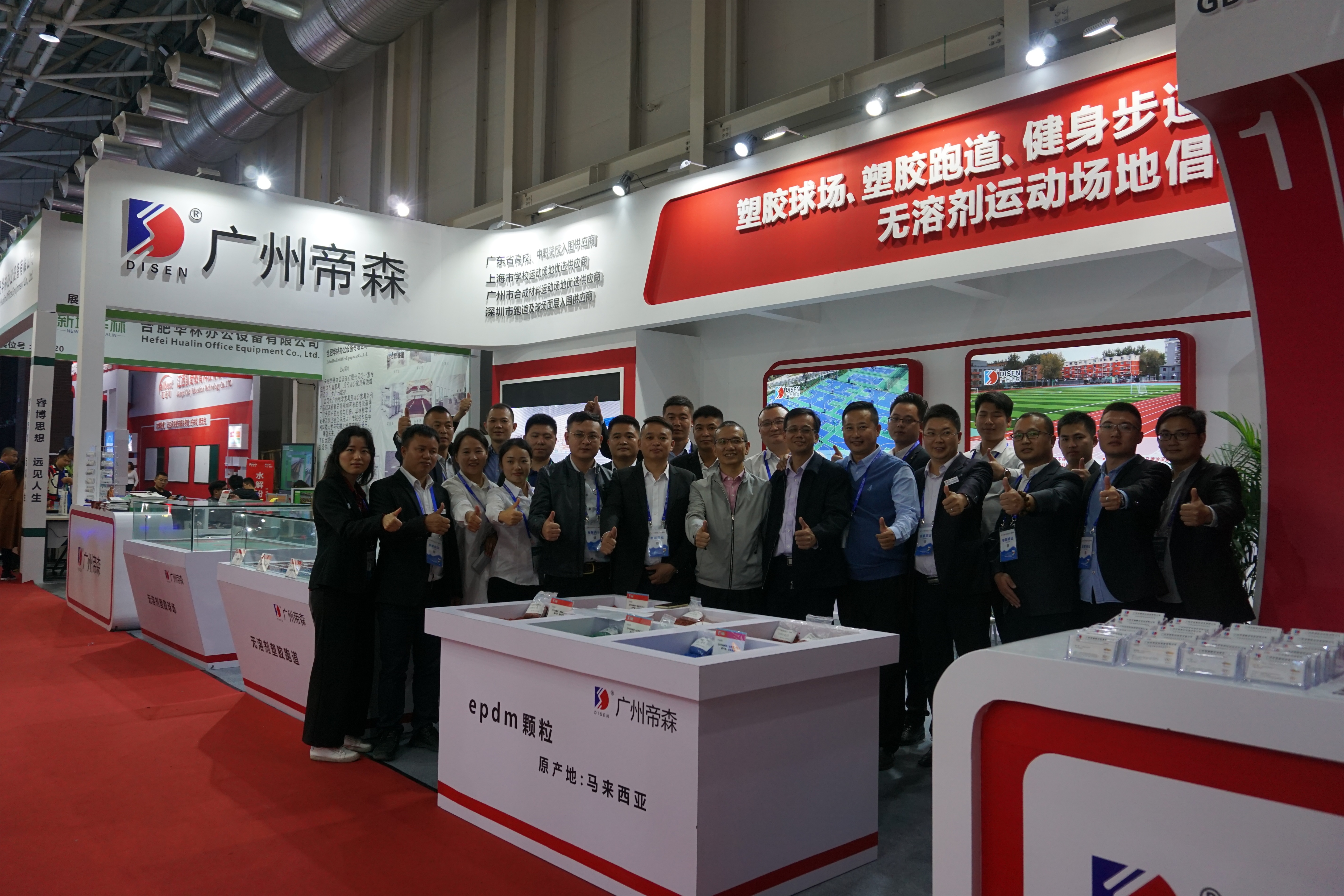 廣州帝森DISEN在第77屆中國教育裝備展示會發布多項運動地材新產品、新技術,客戶親身接觸體驗樣品性能后,贊嘆帝森領先的技術研發實力,對企業和產品也有了更大信心。